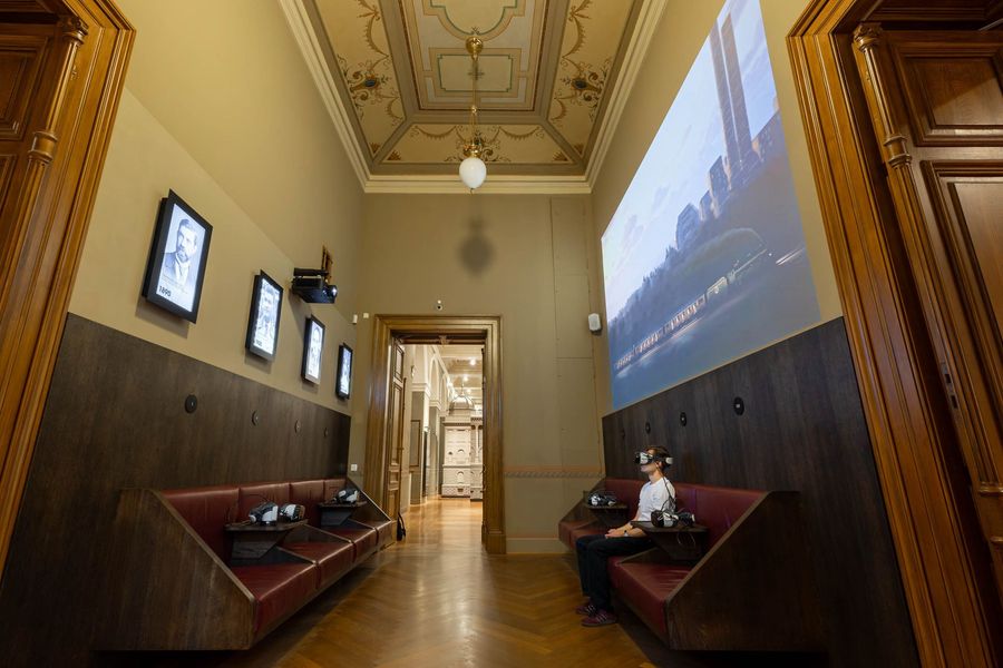 Pro novou expozici v Historické budově Národního muzea jsme vytvořili dlouhodobou instalaci Kroky pokroku, která prostřednictvím VR zprostředkovává fiktivní, ale myšlenkově hluboké rozhovory skutečných osobností českých dějin o smyslu elektrického světla, organizaci práce a přínosech i možných úskalích technologického vývoje. Součástí realizace bylo také architektonické řešení celé místnosti, navržené tak, aby se přirozeně začlenilo do koncepce muzea a zároveň návštěvníky intuitivně zvalo k objevování.